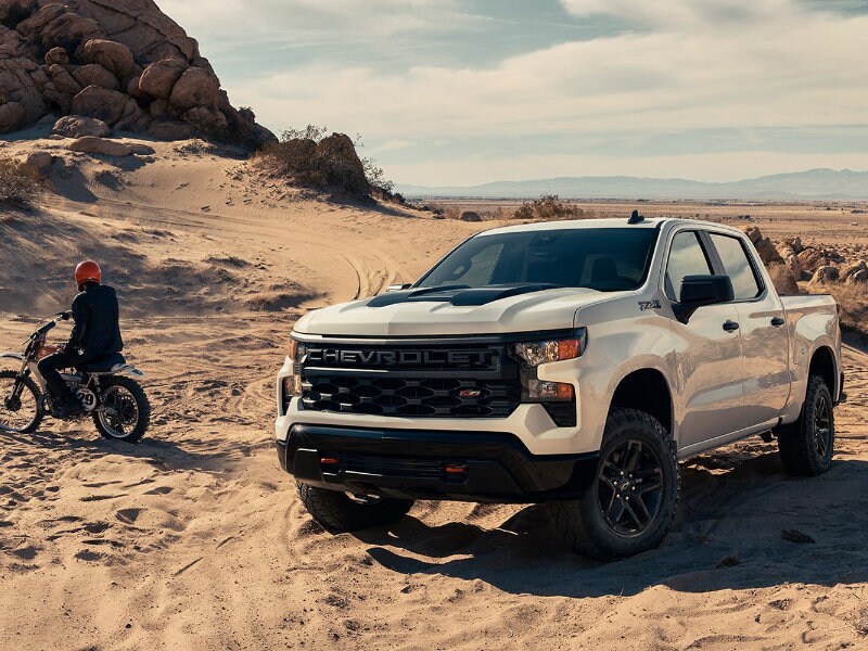 The WT is the base option among the 2023 Chevrolet Silverado 1500 trim levels near Columbus. WT stands for work truck, which often suggest minimalism, but this model is quite well equipped. It has air conditioning, a two-speaker sound system and a 7-inch infotainment touch screen. Chevrolet GMC of Mount Vernon also offers the Custom, which is essentially the base model for the non-fleet customer. It drops the vinyl seating and rubber flooring in favor of cloth upholstery and carpeting, and it also has onboard Wi-Fi hotspot and a more robust audio system with satellite radio. Note that Custom is also available in a Custom Trail Boss edition that adds the Z71 suspension upgrade.