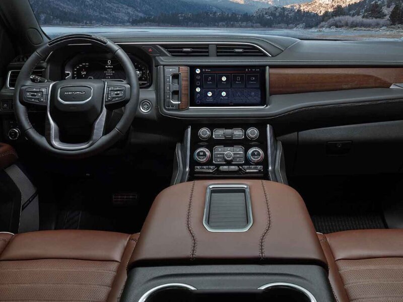 When traveling in the new 2023 GMC Yukon near Columbus, everyone can spread out. Even the third-row seat provides enough legroom for adults. There are several great amenities available. GMC's power-sliding center console enables you to tuck away personal items. Meanwhile, heated/ventilated front seats and heated second-row seats take comfort to the next stage. Premium interior materials, such as perforated leather upholstery and aluminum accents, create an upscale atmosphere. If you want to experience an elite level of luxury, step up to the new Yukon Denali Ultimate. Its 16-way power front seats with massaging modes enable you to truly unwind. Don't forget about the Yukon's flexibility cargo area, which provides more than 70.0 cubic feet of storage space with the third row folded down. All the latest high-tech features are available. GMC's modern infotainment system features a 10.2-inch diagonal touchscreen with Google built-in. Apple CarPlay and Android Auto allow you to seamlessly link your smartphone to the interface. With the Yukon's built-in Wi-Fi hotspot, multiple people can connect to the internet at once. An optional rear entertainment system with twin media touchscreens makes road trips more satisfying. To experience the best music-listening experience, step up to the Yukon's new 18-speaker Bose Performance Series audio system. Other available features include wireless charging, a digital gauge cluster, and a panoramic sunroof. For more details on the new Yukon's interior, contact your local GMC dealer serving Columbus Mansfield Newark Mount Vernon!
