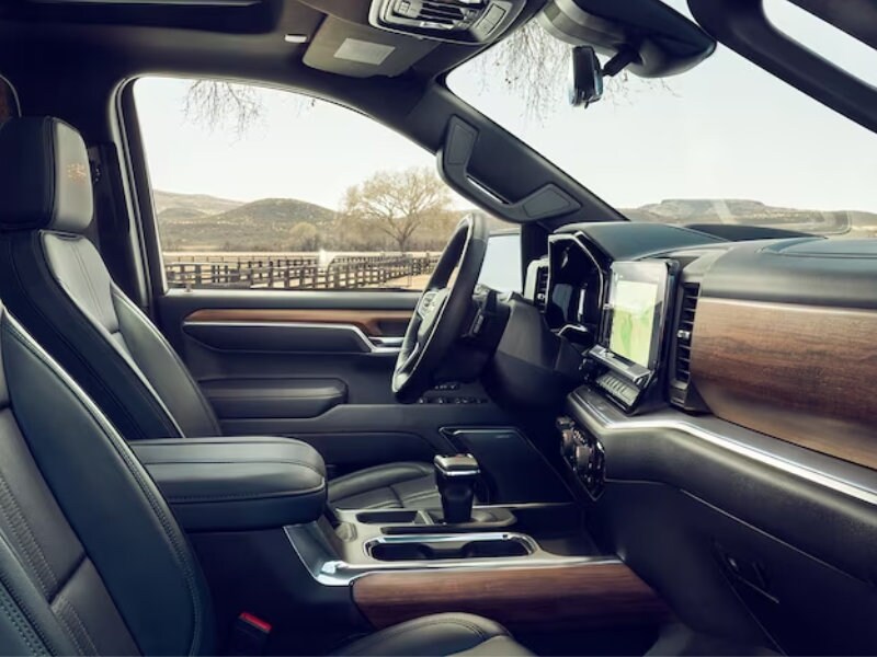 Behind the wheel, the interior of the 2024 Chevrolet Silverado 1500 greets you and your passengers with an environment designed to command the road while offering its occupants supreme comfort. With the Chevrolet Silverado's intelligent interiors, drivers near Fredericktown, OH, can enjoy standard features such as a 13.4-inch diagonal Infotainment touch-screen paired with a 12.3-inch diagonal Driver Information Center, available on LT and above trims. The cabin is crafted with high-quality materials, including premium leather seating surfaces in the High Country trim, which features exquisite perforation and stitching patterns complemented by open-pore wood trim. Convenience is at your fingertips with wireless Apple CarPlay® and Android Auto™ compatibility, enabling seamless smartphone integration. For those requiring an extra touch of luxury, consider opting for available features like power retractable assist steps and Super Cruise™ hands-free driver assistance technology, both adding an extra layer of sophistication and ease.