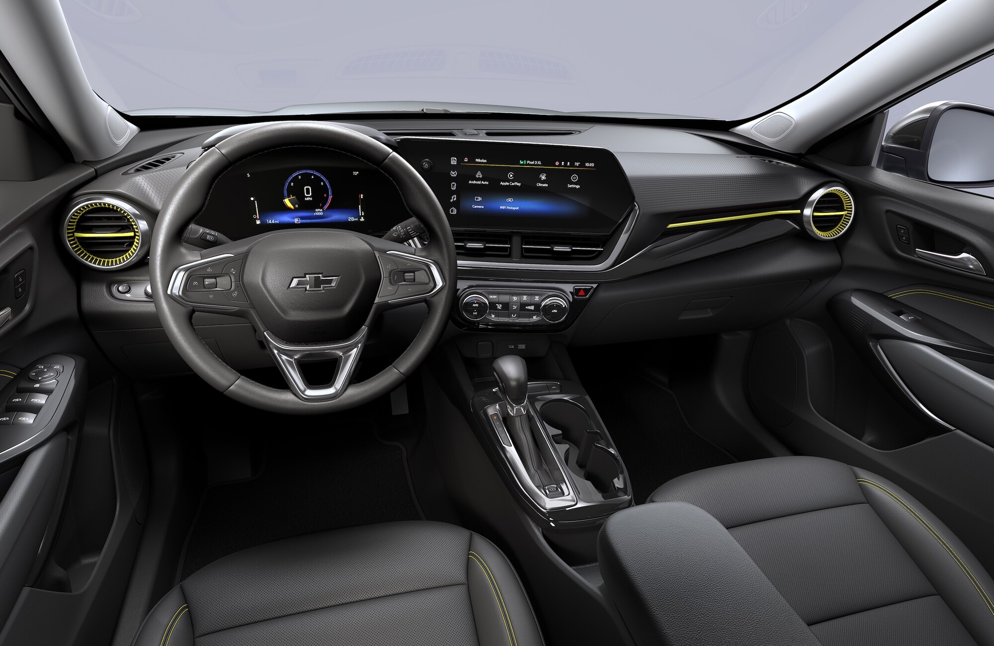 Like a good magician's trick, everyone loves a good compact that still offers plenty of interior volume. The 2026 Chevy Trax makes this possible with up to 54 cubic feet of cargo space and plenty of room for 5 passengers. That's the practical category taken care of, with exclusive themes being the Trax's next big attraction. The new Chevy Trax 1RS and 2RS trims invigorate the senses with bright red accents and a racecar-style flat-bottomed steering wheel to get the adrenaline pumping. The modernized Chevy Trax ACTIV trim raises the bar in Mount Vernon with unique yellow accents that are far from ordinary. Active Noise Control encases you in a controlled atmosphere where you can focus on your favorite aspects of each and every drive.