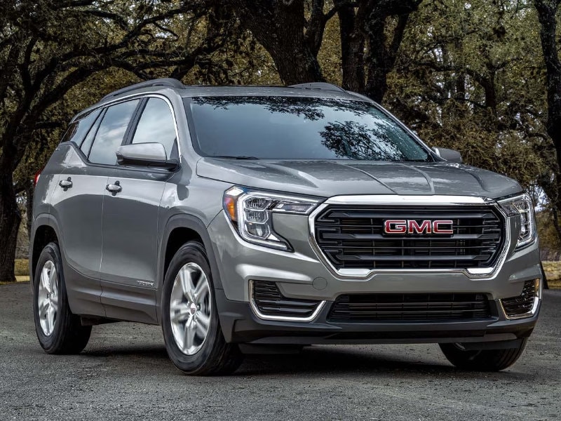 The base SLE comes with the model’s standard 1.5L turbocharged engine and is rated at 175 horsepower and 203 lb-ft of torque. A 9-speed automatic transmission handles the transitions on the SLE and every other GMC Terrain. GMC Pro Safety, 17-inch silver-painted aluminum wheels, and a programmable power liftgate are all highlights of the new SLE trim. An SLT trim adds an 8-inch diagonal GMC infotainment system, heated steering wheel, and 19-inch gloss black aluminum wheels with all-season blackwall tires.