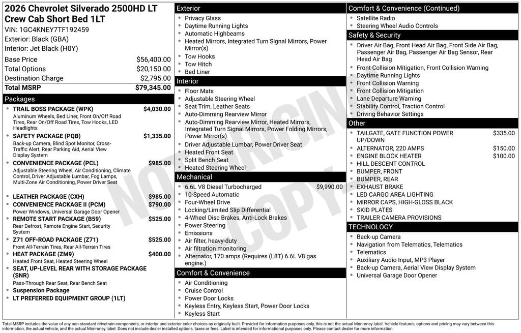 Elevate your driving experience and conquer any challenge with this exceptional 2026 Chevrolet Silverado 2500HD LT. Visit our showroom today to take it for a test drive and discover the true power and capability that this truck has to offer.