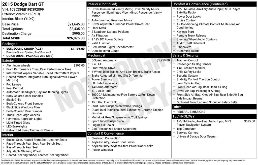 Whether you're commuting, running errands, or embarking on a road trip, this 2015 Dodge Dart Limited/GT is poised to deliver a driving experience that exceeds your expectations. With its exceptional features, efficient powertrain, and stylish design, this Dart is a compelling option that deserves your attention.