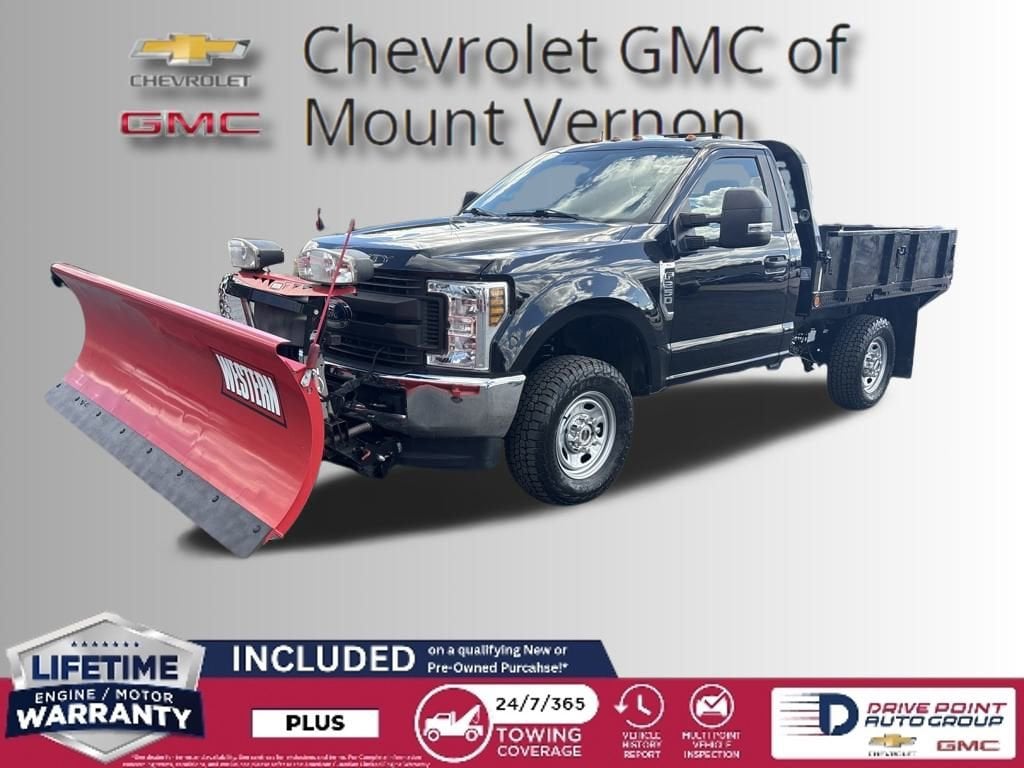 4WD, Snow Plow Prep Package, 3.73 Axle Ratio, 4-Wheel Disc Brakes, ABS brakes, Air Conditioning, Brake assist, Cloth 40/20/40 Split Bench Seat, Delay-off headlights, Dual front impact airbags, Dual front side impact airbags, Electronic Stability Control, Electronic-Locking w/3.73 Axle Ratio, Exterior Backup Alarm (Pre-Installed), Exterior Parking Camera Rear, Front anti-roll bar, Front Center Armrest w/Storage, Front reading lights, Fully automatic headlights, GVWR: 10,000 lb Payload Package, LED Roof Clearance Lights, Low tire pressure warning, Outside temperature display, Overhead airbag, Passenger cancellable airbag, Passenger vanity mirror, Platform Running Boards, Power steering, Privacy Glass, Radio: AM/FM Stereo/MP3 Player, Rear step bumper, Rear View Camera & Prep Kit, SiriusXM Radio, SYNC Communications & Entertainment System, Tachometer, Telescoping steering wheel, Tilt steering wheel, Traction control, Trip computer, Upfitter Switches (6), Variably intermittent wipers, Wheels: 18 Sparkle Silver Painted Cast Aluminum, 4WD, Snow Plow Prep Package.