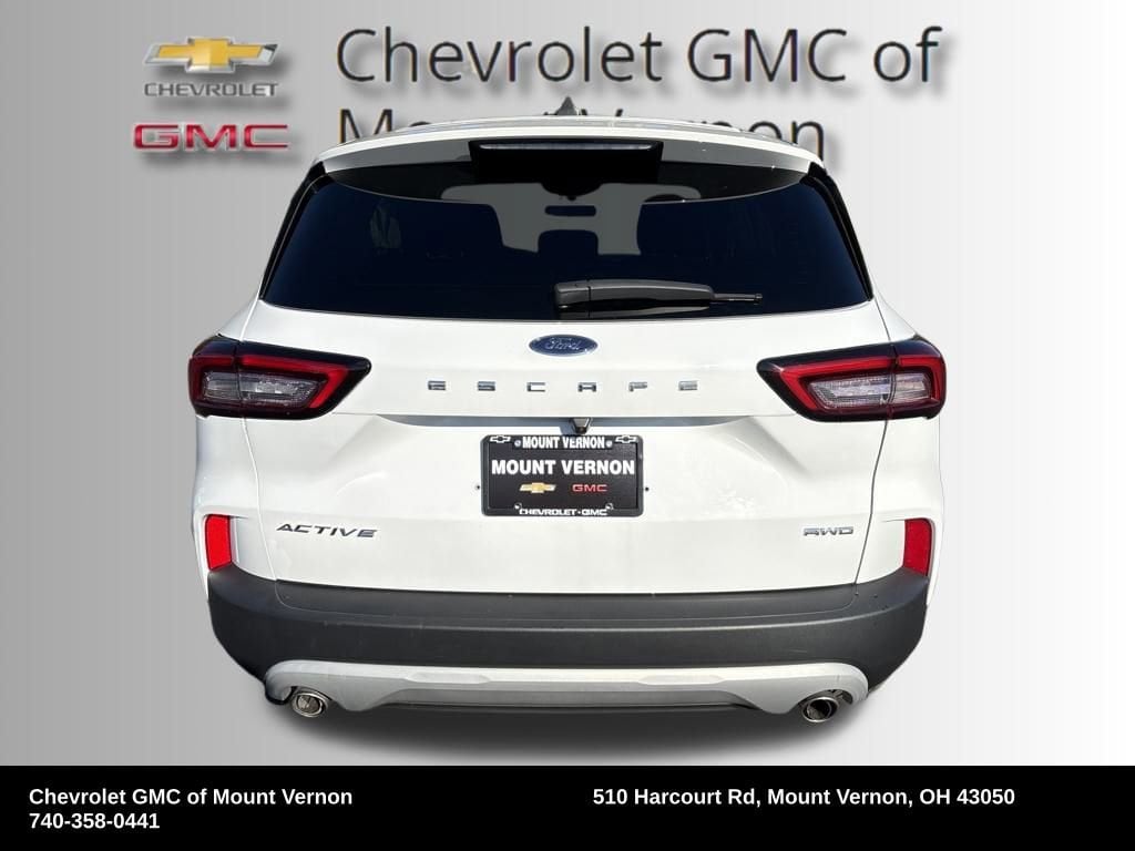 Escape Active, AWD, 3.81 Axle Ratio, 4-Wheel Disc Brakes, 6 Speakers, ABS brakes, Air Conditioning, Alloy wheels, AM/FM radio: SiriusXM, AM/FM Stereo, Auto High-beam Headlights, Automatic temperature control, Brake assist, Bumpers: body-color, Compass, Delay-off headlights, Driver door bin, Driver vanity mirror, Dual front impact airbags, Dual front side impact airbags, Electronic Stability Control, Emergency communication system: SYNC 4 911 Assist, Equipment Group 200A, Exterior Parking Camera Rear, FordPass Connect, Four wheel independent suspension, Front anti-roll bar, Front Bucket Seats, Front Center Armrest, Front dual zone A/C, Front License Plate Bracket, Front reading lights, Fully automatic headlights, Heated door mirrors, Heated front seats, Heated steering wheel, Illuminated entry, Knee airbag, Low tire pressure warning, Occupant sensing airbag, Outside temperature display, Overhead airbag, Overhead console, Panic alarm, Passenger door bin, Passenger vanity mirror, Power door mirrors, Power driver seat, Power Liftgate, Power steering, Power windows, Radio data system, Rear anti-roll bar, Rear reading lights, Rear seat center armrest, Rear window defroster, Rear window wiper, Remote keyless entry, Speed control, Speed-sensing steering, Speed-Sensitive Wipers, Split folding rear seat, Spoiler, Steering wheel mounted audio controls, SYNC 4, Tachometer, Telescoping steering wheel, Tilt steering wheel, Traction control, Trip computer, Unique Cloth Front Bucket Seats, Variably intermittent wipers, Wheels: 17 Shadow Silver-Painted Aluminum, Escape Active, AWD.