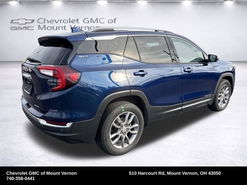 The 2022 GMC Terrain SLT is a remarkable SUV that blends style, performance, and cutting-edge technology. Boasting a sleek Marine Metallic Blue exterior and a well-appointed interior, this Terrain SLT is sure to turn heads wherever you go.