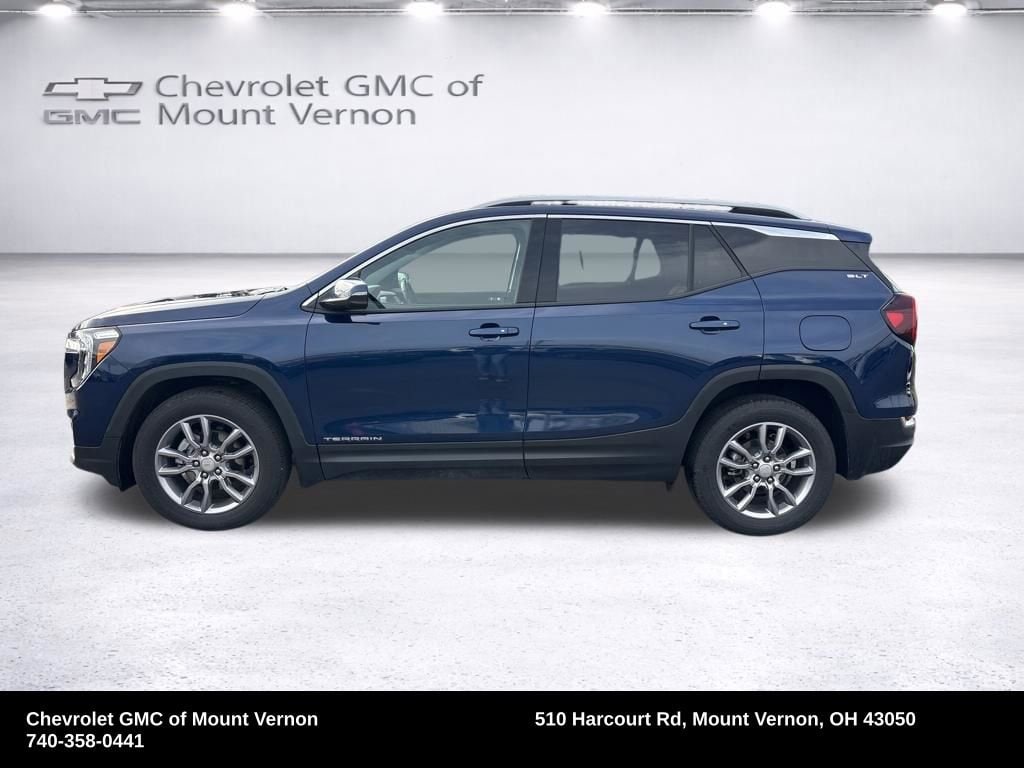 Step inside the Terrain SLT and you'll be greeted by a host of premium amenities. The leather-appointed seating, heated front seats, and power driver's seat with lumbar support ensure maximum comfort. The 8-inch GMC Infotainment Audio System with Wireless Apple CarPlay and Wireless Android Auto integration keeps you connected and entertained. The Head-Up Display and HD Surround Vision further enhance the driving experience, providing vital information at a glance and a bird's-eye view of your surroundings.